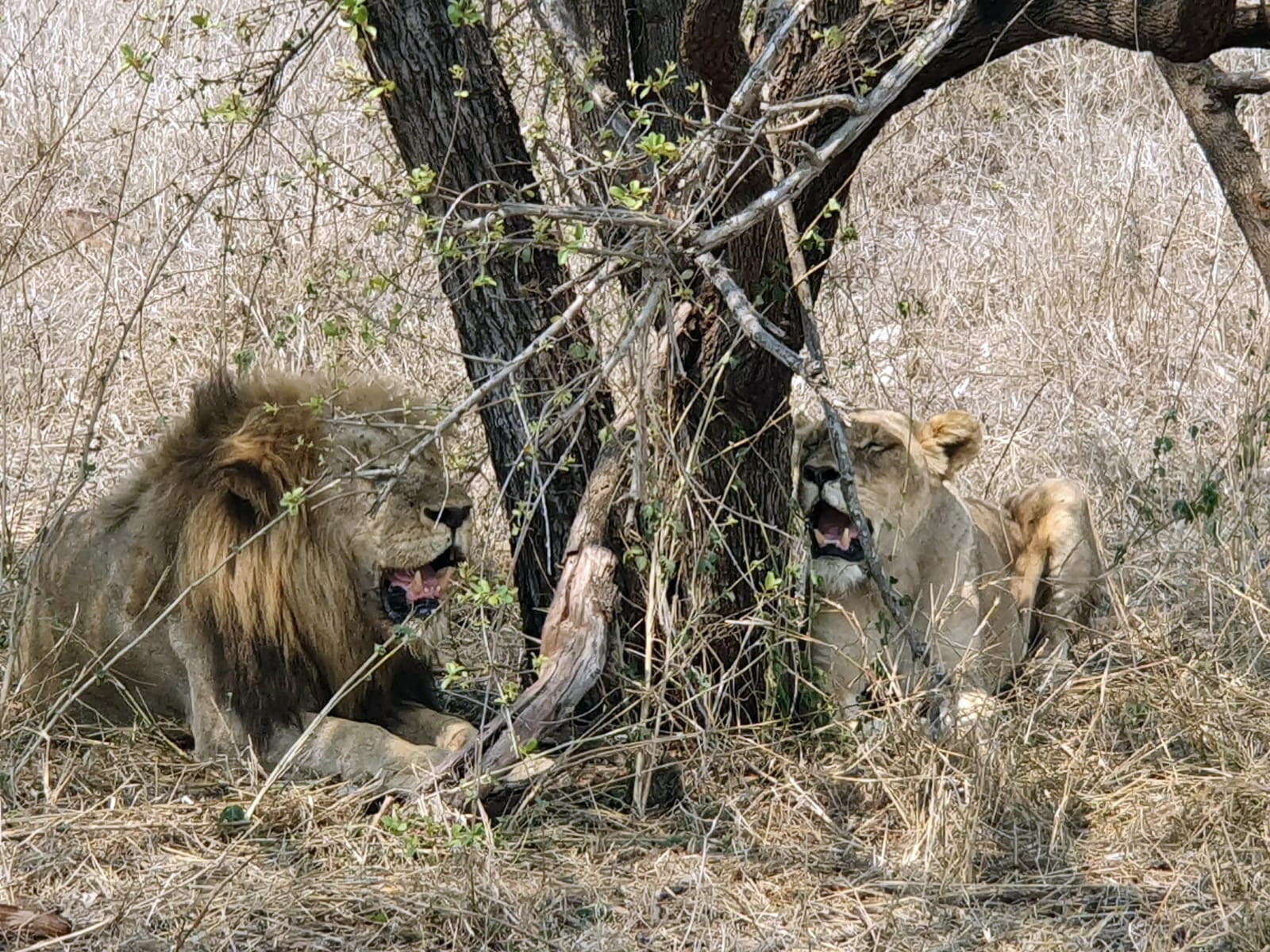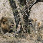 Bon pour vous faire patienter, des lions au repos (comme la plupart du temps). Mais ils vont se réveiller…