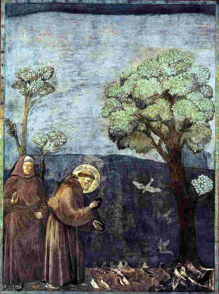 Né d’une famille de la bourgeoisie commerçante d’Ombrie, saint François, touché par la grâce, fonda en 1209 une communauté de frères « mineurs » -les petits, axée sur la prière, l’apostolat évangélique et la pauvreté absolue, sur laquelle les successeurs du saint se partagèrent entre spirituels et conventuels, pour une interprétation plus ou moins stricte de son observance. Les religieux devaient prêcher la pénitence; leurs solides connaissances théologiques s’illustrèrent dans de grands noms, saint Bonaventure, saint Antoine de Padoue et Roger Bacon. Ils furent aussi missionnaires, un Franciscain fut fait archevêque de Pékin en 1307. La fondation des Carmes et des Augustins vint compléter ce renouveau qui correspond au développement du monde urbain médiéval….